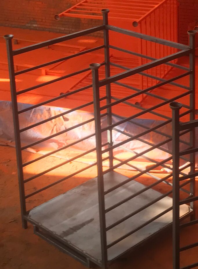 تولیدات شرکت ما ساخت انواع باکس پالت های فلزی سردخانه ای . پالایشگاهی . پتروشیمی و پالت راک و ساخت انواع پل های چرثقیل و اسکلت های فلزی و سوله